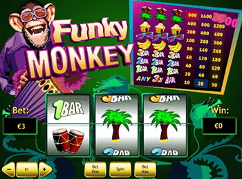 Интерфейс аппарата Funky Monkey не вызовет сложностей – для осуществления настроек в игре предусмотрено минимальное число кнопочек. Геймерам разрешается самостоятельно корректировать поставленную на кон сумму с  помощью выбора количества игровых линий и денежной ставкой. Остальные параметры остаются неизменными. Главным преимуществом видеослота является наличие всего лишь 3 барабанов и 1 линии для выплат, что существенно увеличивает вероятность выпадения выигрышной комбинации.